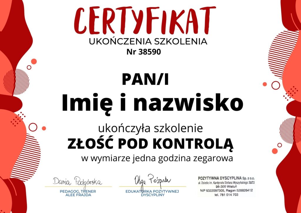 Właścicielem szkolenia jest firma POZYTYWNA DYSCYPLINA SPÓŁKA Z OGRANICZONĄ ODPOWIEDZIALNOŚCIĄ